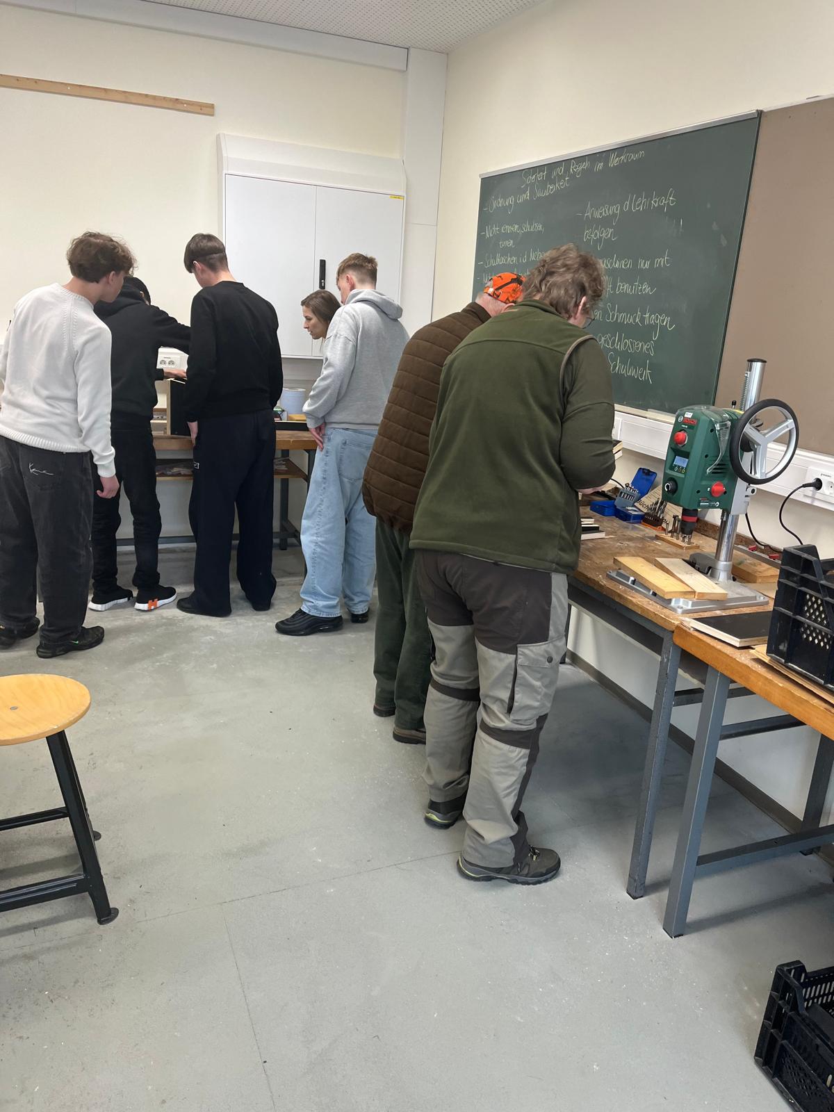 IMG 20260310 WA0000 klDie Klassen 9c und 9d beschäftigten sich kürzlich im Rahmen eines Projekttages intensiv mit dem Thema Naturschutz in der eigenen Region. Gemeinsam mit dem örtlichen Hegering setzten die Schülerinnen und Schüler ein praktisches Vorhaben um: den Bau von Nistkästen für heimische Vogelarten.